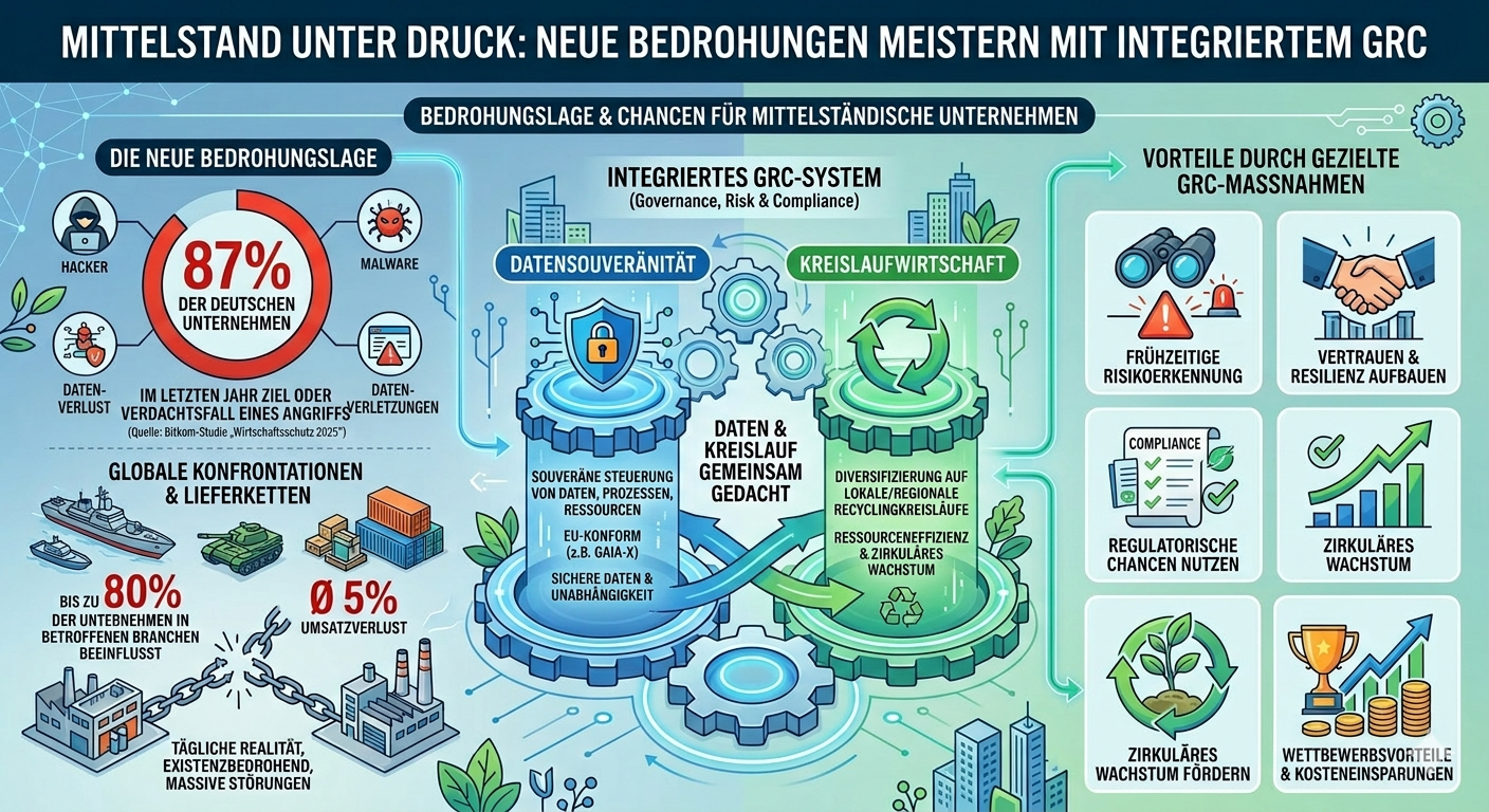 Mit gezielten GRC-Maßnahmen schaffen mittelständische Unternehmen die Grundlage für Vertrauen, Resilienz und zirkuläres Wachstum.
